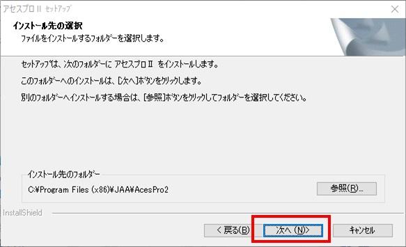 7.「アセスプロⅡのInstallShield Wizardへようこそ」という画面が表示されるので、[次へ]を選択します。