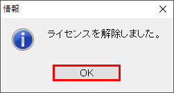 7.「ライセンスを解除しました。」と表示されるため[OK]ボタンをクリックします。