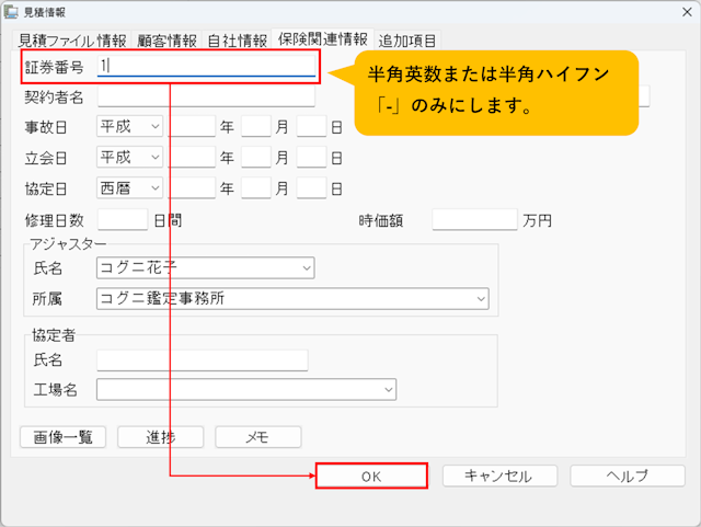 4.半角英数または半角ハイフン「-」以外が入力されている場合は修正し、[OK]を選択します。