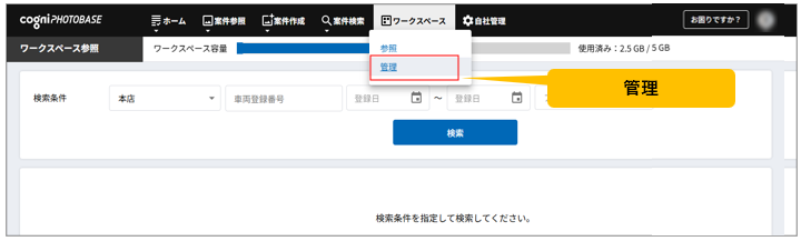 - ※アカウントに「管理」の権限がない場合は表示されません。