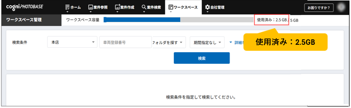ワークスペースの使用状況は以下の手順で確認することができます。
