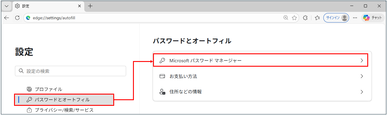 Microsoft Edgeでパスワードをパソコンに記憶させる ![]()