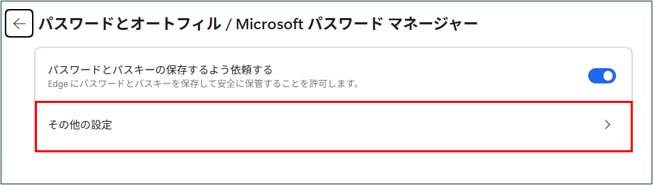 2.「パスワードとオートフィル」の「Microsoftパスワードマネージャー」をクリックします。