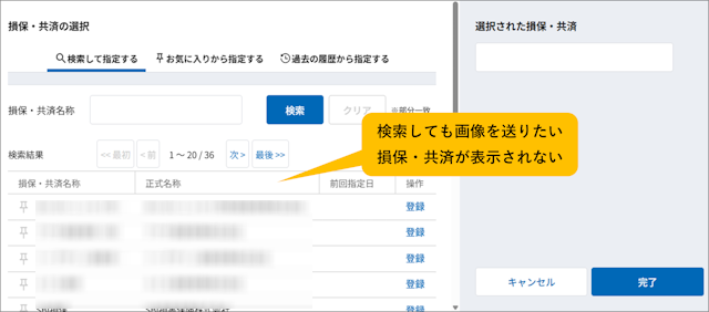 表示されていない損保・共済はコグニフォトベースを利用していないため、コグニフォトベースで画像を送ることはできません。