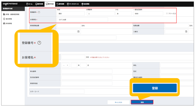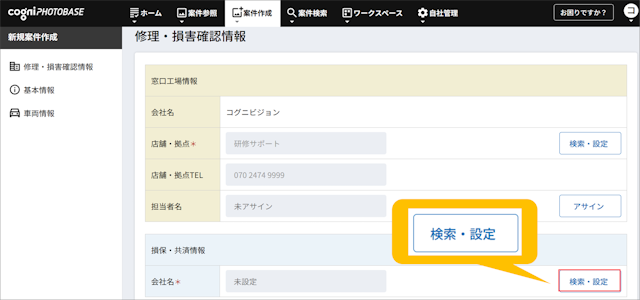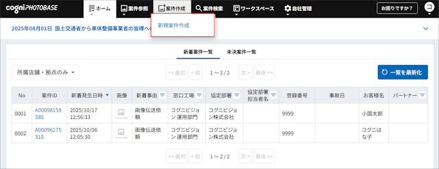 新規案件としてコグニフォトベースに保険外修理案件が登録されます。
