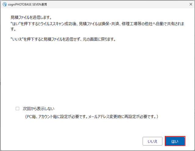 2.「見積ファイルを送信します」の画面が表示された場合は[はい]を選択します。