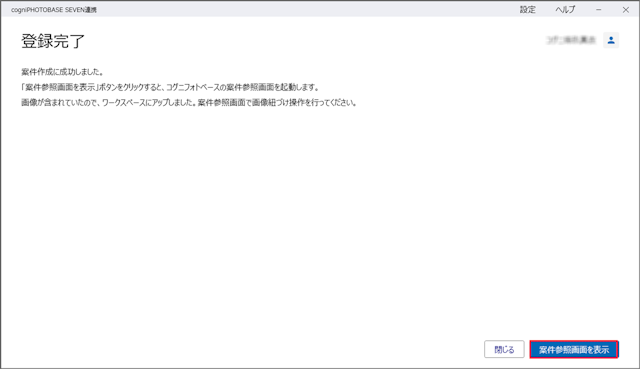 3.「登録完了」のメッセージが表示されたら[案件参照画面を表示]を選択します。
