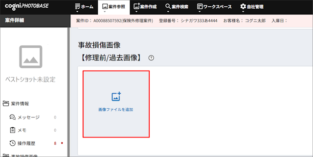 コグニフォトベース上の登録番号と、アプリや見積システムに入力された登録番号が異なると、画像登録時に表示されません。