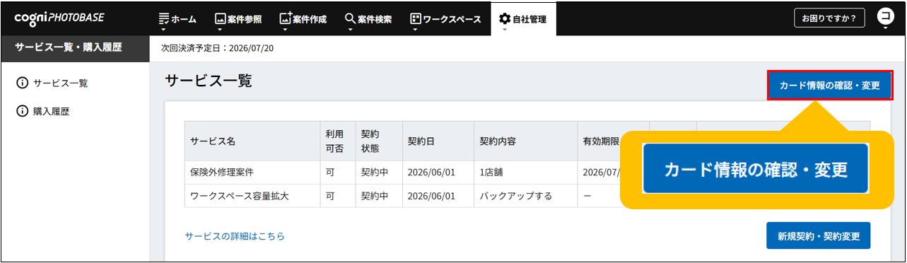 1.【自社管理】-「有料サービス管理」をクリックします。