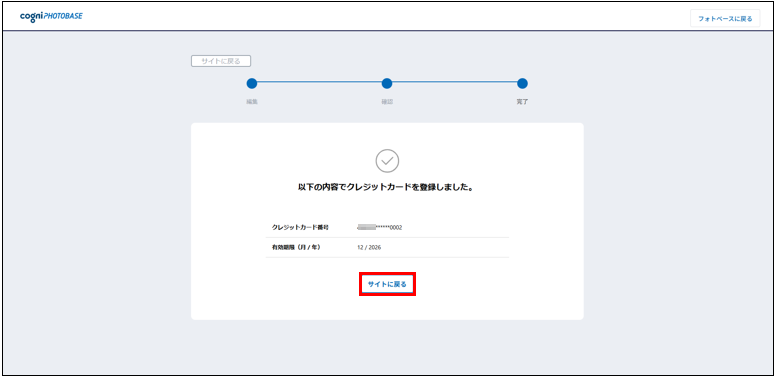 [サイトに戻る]ボタンをクリックすると、コグニフォトベースの画面に戻ります。