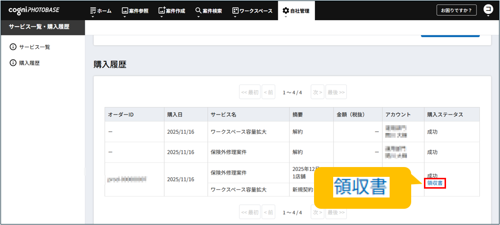 購入した有料サービスの請求書をダウンロードする方法を説明します。