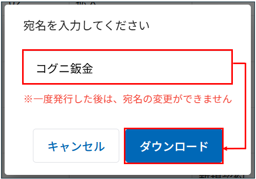 3.宛名を入力した後、[ダウンロード]ボタンをクリックします。