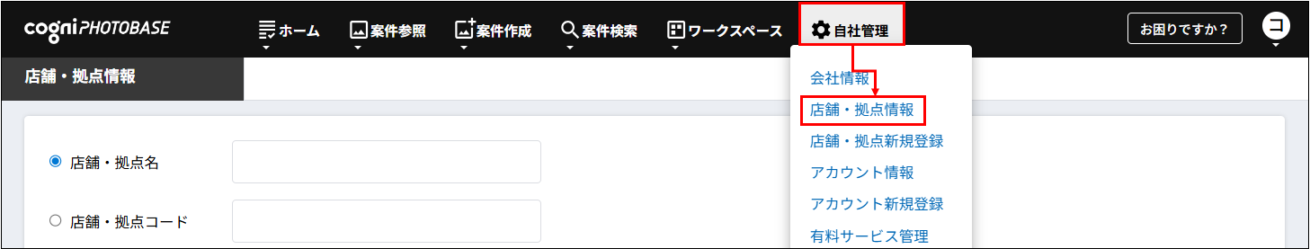 1.【自社管理】-「店舗・拠点情報」を選択します。