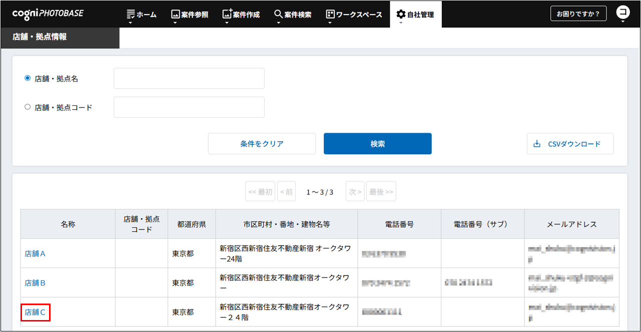 店舗廃止後も、同じ会社内の別店舗に所属しているアカウントから、廃止した店舗の案件を確認できます。