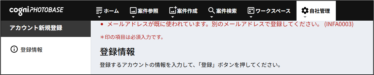 コグニフォトベースを利用するアカウントを新規に登録することができます。