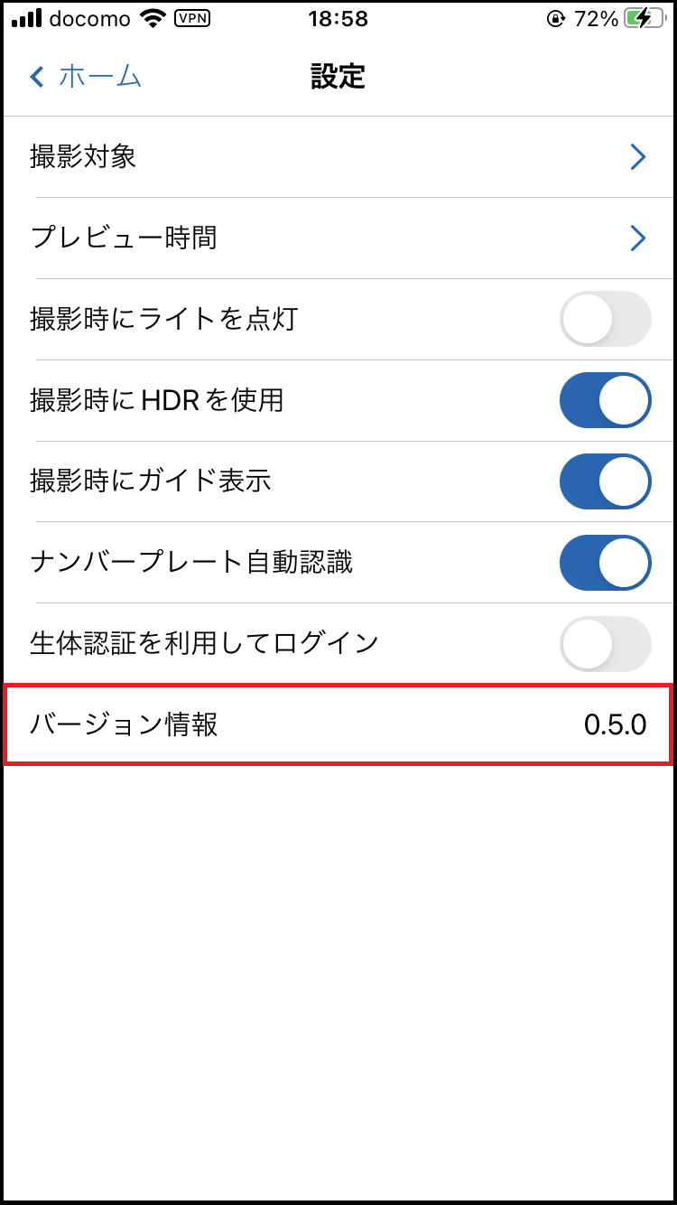 2. 【設定】画面下部の[バージョン情報]に表示されている数字を確認します。